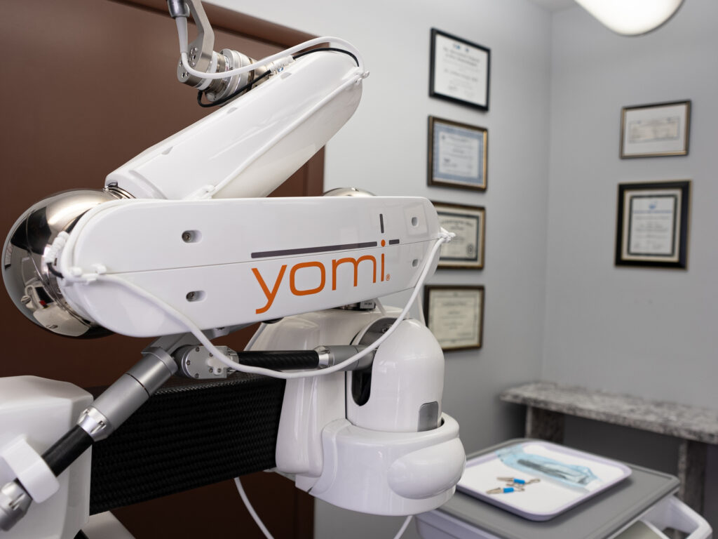 Yomi® is the first and only FDA-cleared robot-assisted dental surgery system. It is a computerized navigational system that we use in both the planning and the surgical phases of dental implant surgery.